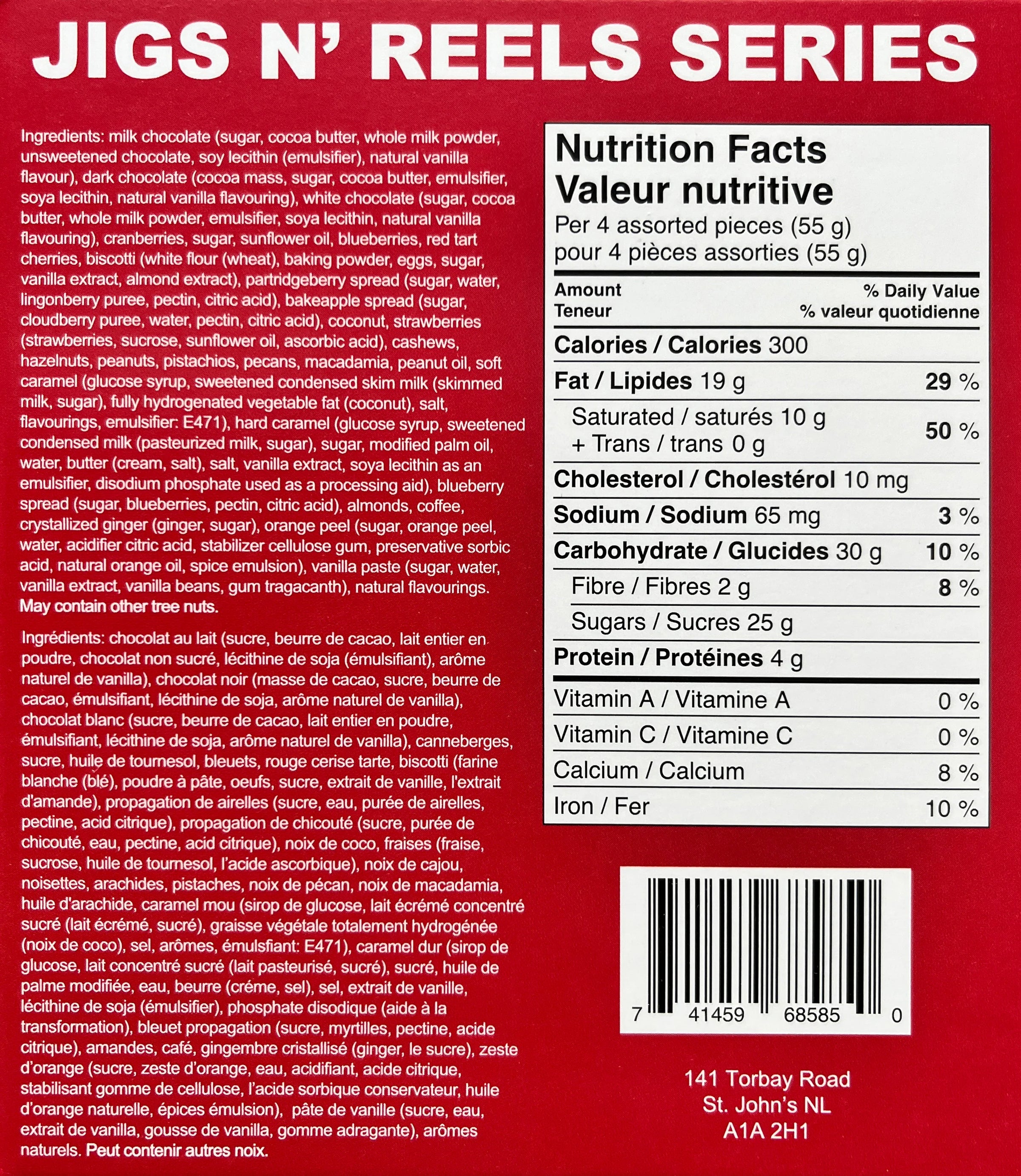 The Jigs n' Reels Series features our very finest milk, dark and white chocolate assortment with an array of centres including berries, nuts and caramels. Each is artisan crafted with pure, simple and delicious local ingredients.