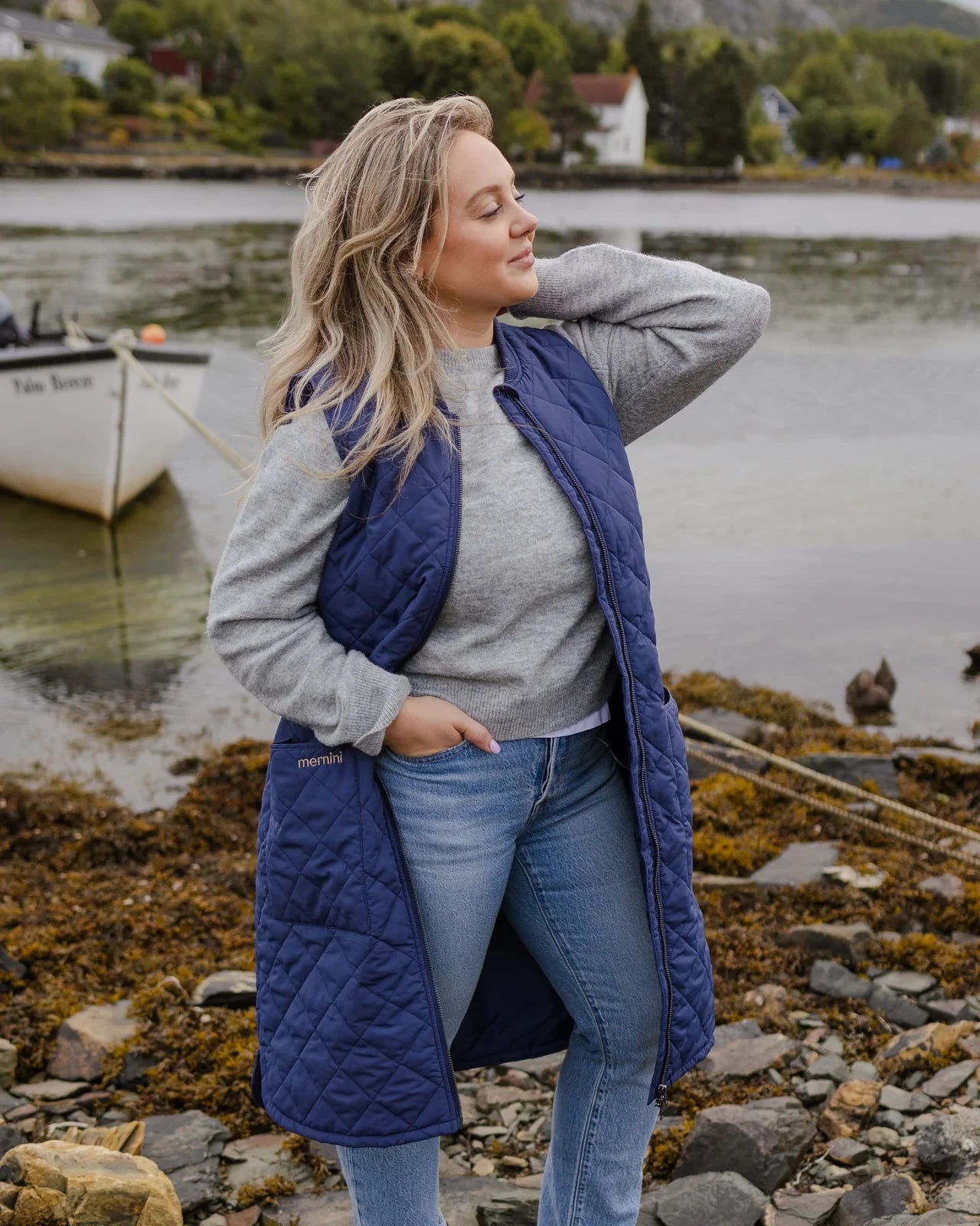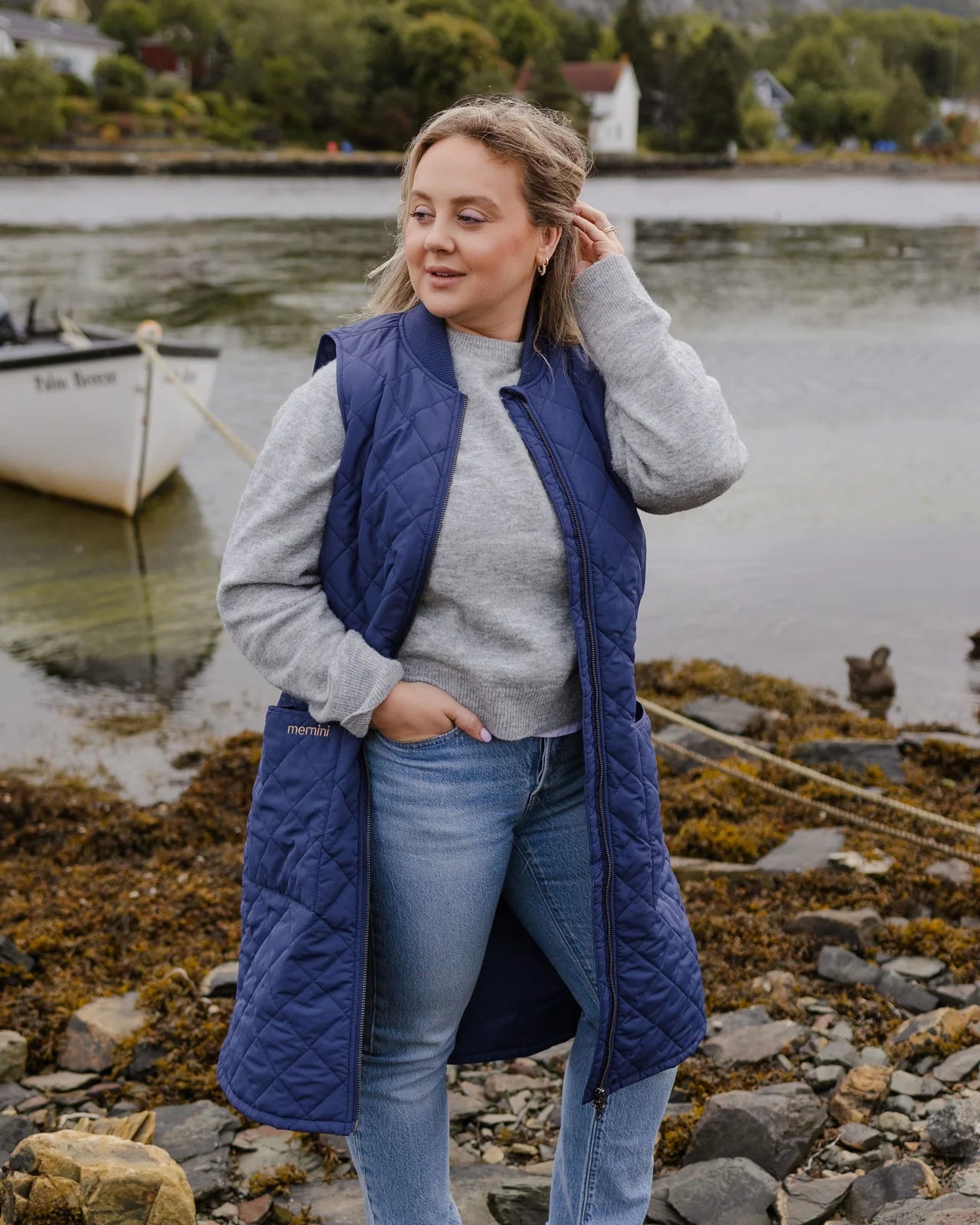 Long and lightweight liner vest designed to fit comfortably under our raincoats. Perfect as an insulator for those cooler rainy days or as a standalone fashionable outerwear jacket. Polyester filled with a quilted pattern, the long liner vest will keep you warm and looking stylish season after season.