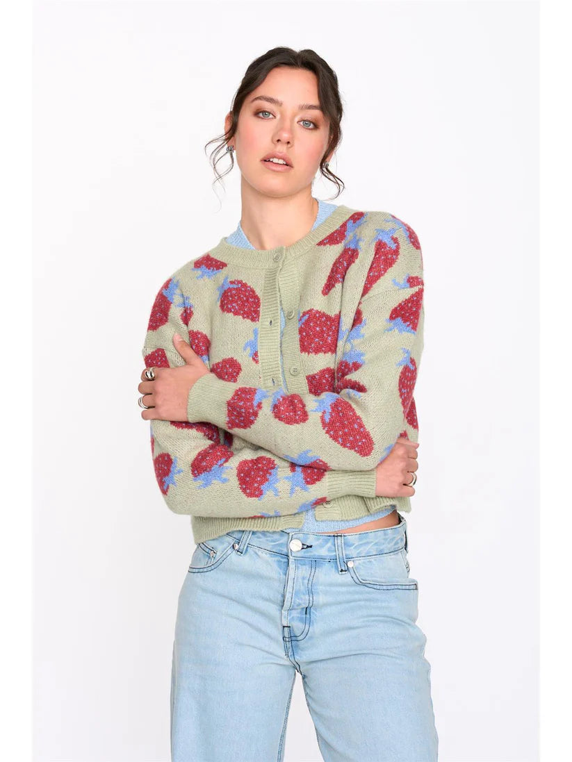 Add a playful touch to your wardrobe with this soft, cozy knitted cardigan featuring a charming strawberry pattern. Its relaxed fit and cropped length make it an easy piece to style with high‑waisted jeans, skirts, or dresses. Perfect for adding a pop of color and personality to everyday looks.
