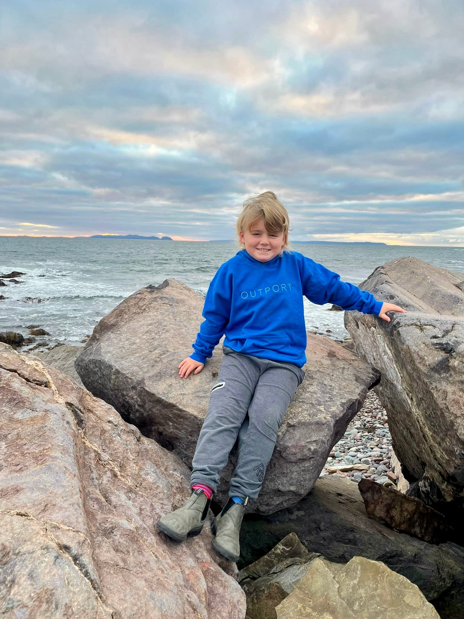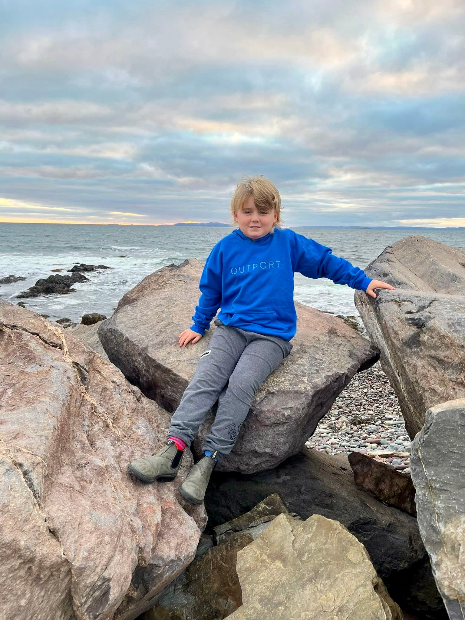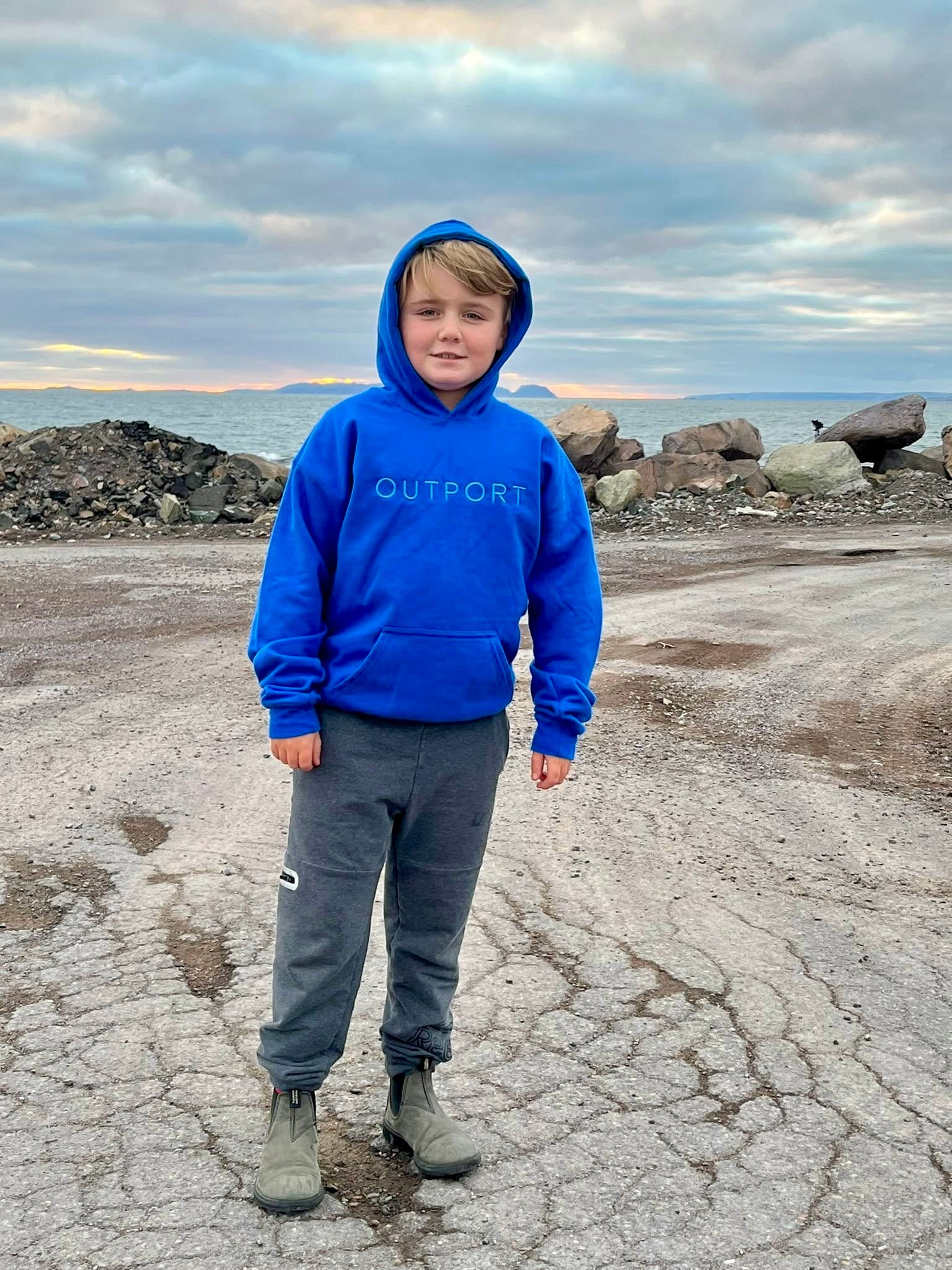 the outport KIDS hoodie- atlantic blue