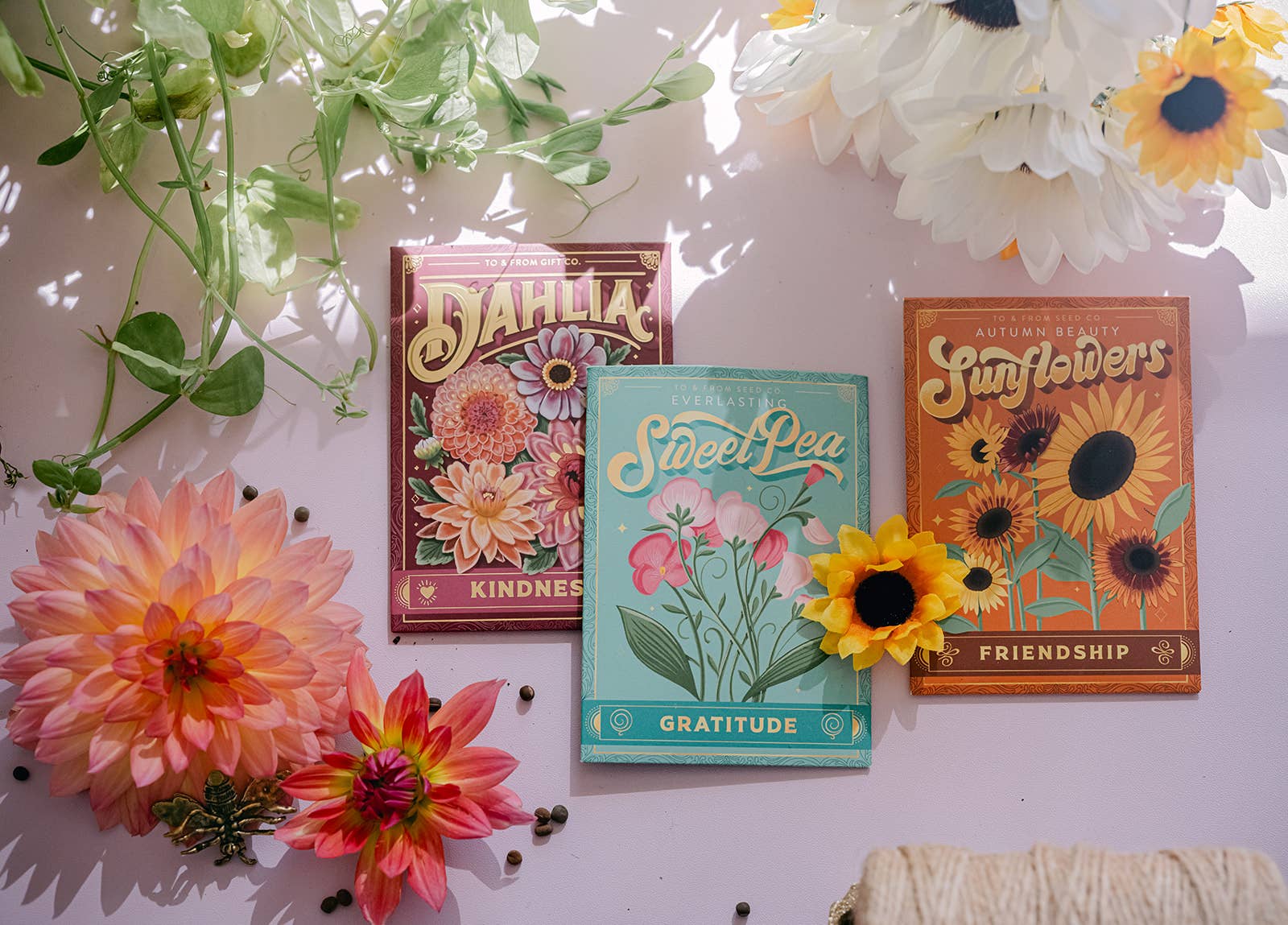 Hand-drawn and printed on premium cardstock, each seed packet features a to/from and custom message area on the back along with an explanation of the floriography meaning behind the botanical for the perfect thoughtful, all-in-one gift.