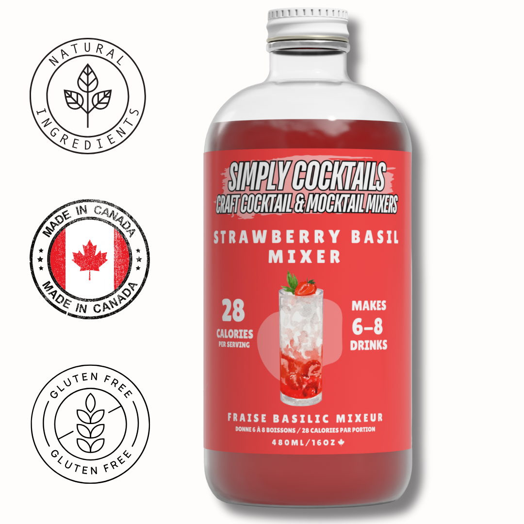 πŸ“ Simply Cocktails Strawberry Basil Cocktail Mixer – Fresh & Flavorful 🌿🍸 A cocktail mix that blends sweet sun-ripened strawberries with fragrant basil for a refreshing, all-natural twist. Made with 50% less sugar than traditional drink mixes, this premium cocktail mixer delivers bold flavor without the excess sweetness. Each bottle makes 6-8 craft cocktails, offering great value and versatility. Looking to make mocktails? No problem! This mixer has you covered. Just mix with your favourite non-alcoholic spirits and soda for a fun and tasty mocktail!